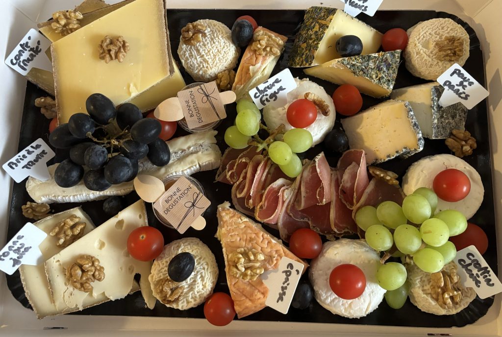 Nous proposons la confection de plateaux avec nos produits ( fromages et charcuterie ) , nous proposons plusieurs types de plateaux : apéritif , après-repas , repas complet , duo , raclette etc… Les quantités dépendent du nombre de personnes adultes enfants et du nombre de sortes de produits.